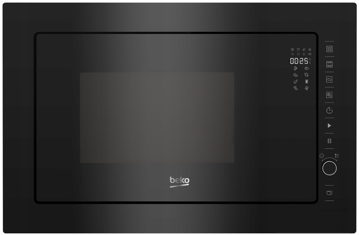 Вбудована мікрохвильова піч, чорна, об'єм 25л, потужність мікрохвиль 900W, 5 рівнів потужності, 8 автоматичних функцій.