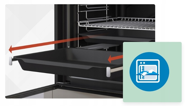Завдяки телескопічним напрямним ви можете безпечно та легко висунути деко з гарячою стравою. , щоб уникнути випадкових опіків.