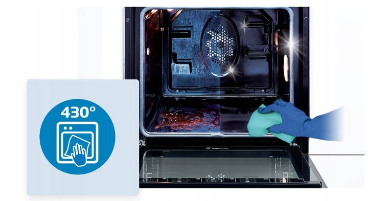 120-хвилинна програма піролізу спалює стійкі плями до попелу. температура 430°С. Залишки, що залишилися після виконання програми, можна легко видалити ганчіркою без використання миючих засобів.