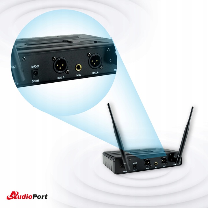 - Включено: 2 -кратний мікрофон UHF, 2x Bodipack, 2x краватка, станція, 6,3 мм кабель гнізда, живлення, 4x R6 1,5В акумулятор,