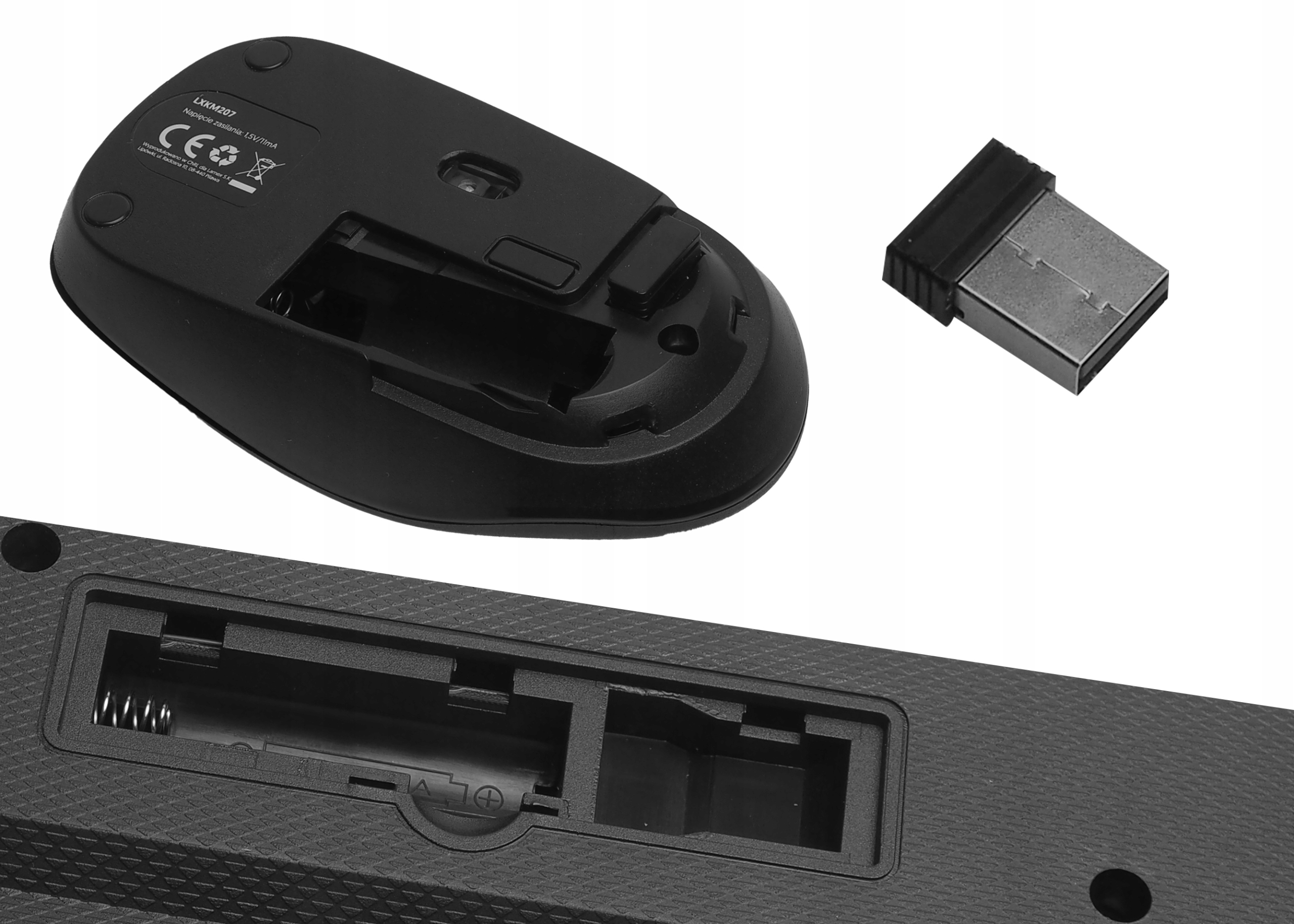 Повнорозмірна клавіатура має додаткові функціональні кнопки праворуч і ліворуч, які значно полегшують роботу та індикатор батареї, що показує її поточний стан. Миша має додаткову кнопку, за допомогою якої можна змінювати її чутливість.