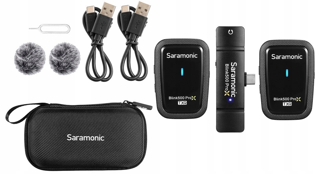 Saramonic Blink500 ProX Q6 (RXUC + TX + TX) - набір для бездротової передачі аудіо, до складу якого входять: 1 USB-C приймач, 2 передавача з вбудованими мікрофонами, чохол на блискавці та необхідні кабелі. Світлові мікропорти ідеально підходять для проведення інтерв’ю, репортажів, відеоблогів, прямих ефірів, вебінарів, дистанційних лекцій чи зйомок весільних свят.
