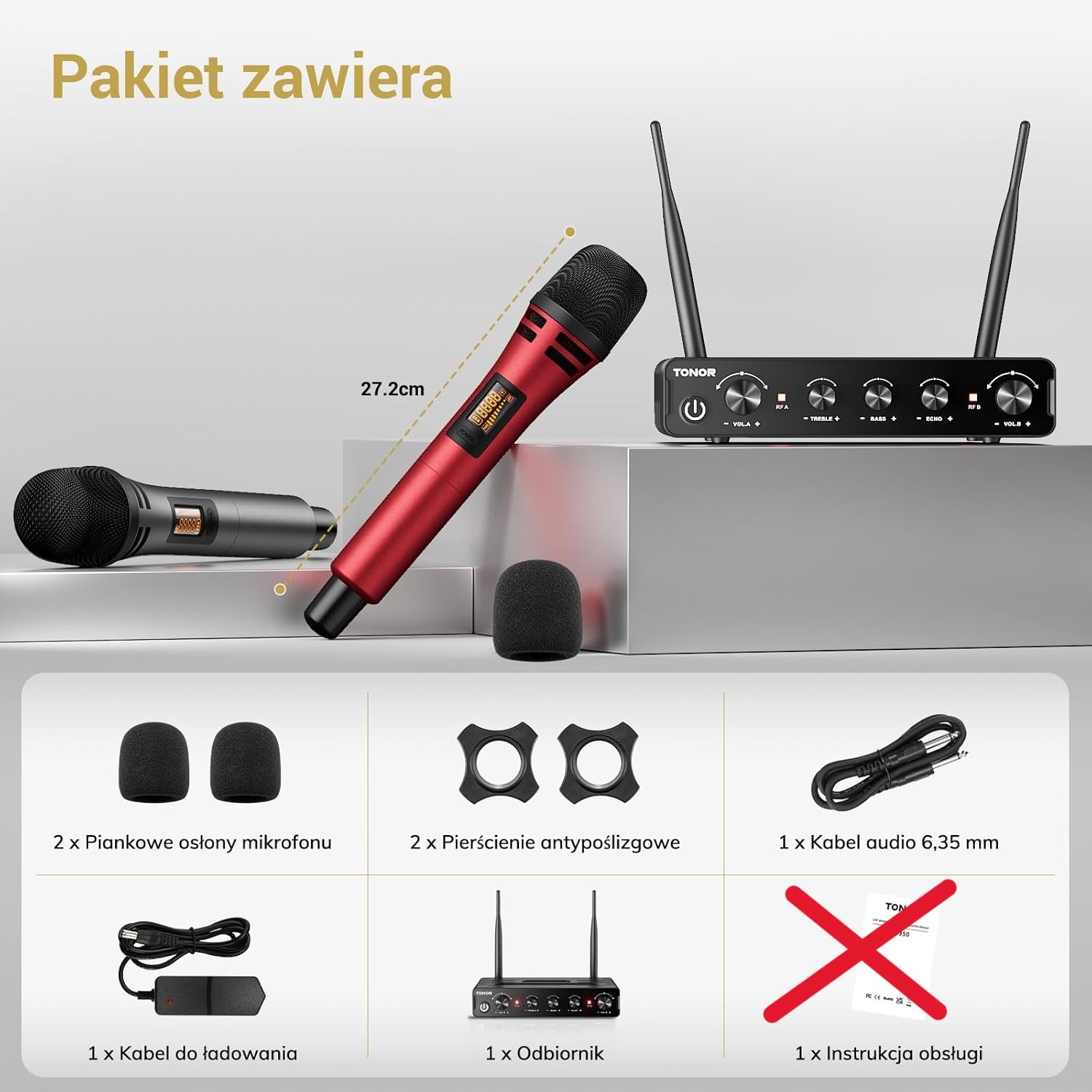 TONOR TW350 UHF караоке бездротові мікрофони Чорно-червоний