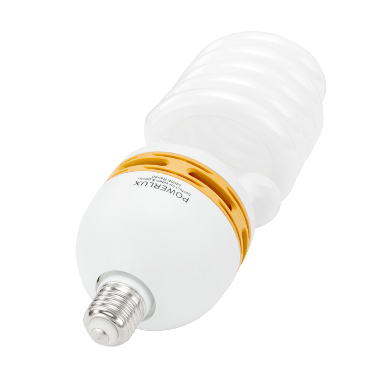 Енергозберігаюча люмінесцентна лампа потужністю 125 Вт з різьбленням E27 з колірною температурою 5400 К забезпечує світло, схоже на сонячне. Цей тип безперервного світла ідеально підходить для безтіньової фотографії або відеозйомки. Завдяки використанню температури світла 5400 К кольори сфотографованих або знятих об'єктів оптимально наближені до реальних, які ми бачимо неозброєним оком. Ще однією величезною перевагою є низька робоча температура, що забезпечує безпеку та комфорт. Завдяки цим характеристикам люмінесцентні лампи Powerlux часто використовуються в фотографічних софтбоксах безперервного освітлення.