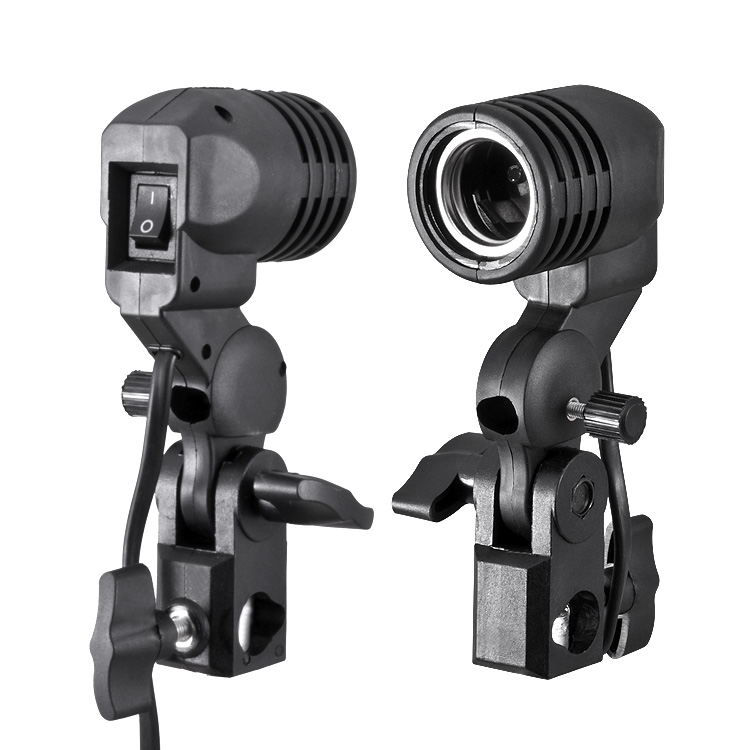Патрон шарнірний використовується для кріплення лампочок, люмінесцентних ламп і спалахів з різьбленням Е27 на підставках для освітлення. Тримач має стандартне кріплення 5/8 дюймів - для освітлювальних стендів.