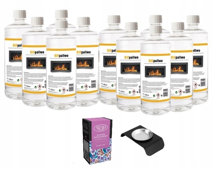 Стартовий набір для біокаміну - 11 штук біопалива в пляшках по 1 л + аромаолія з шафраном + контейнер для ароматерапії