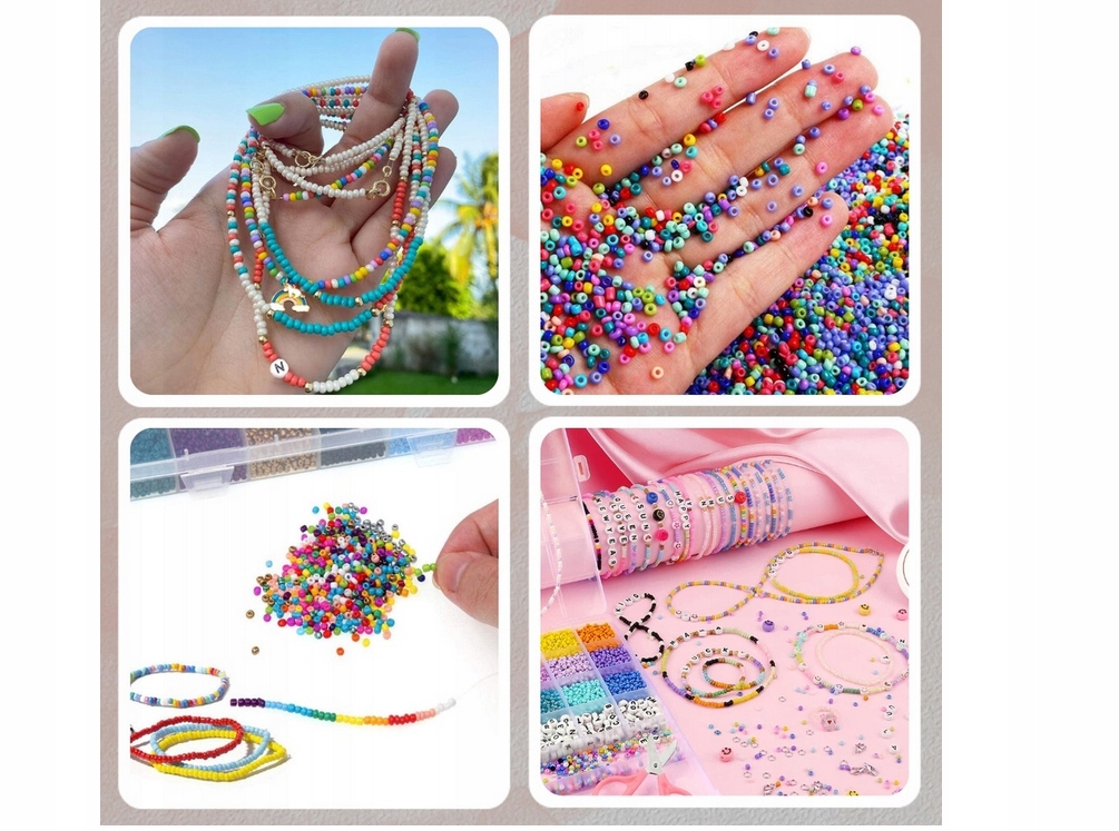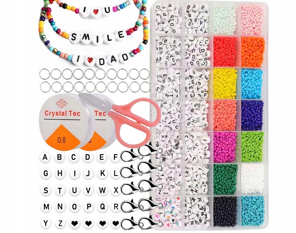 У цьому наборі ви знайдете не тільки велику кількість різнокольорових намистин, а й багато додаткових інструментів і аксесуарів, які полегшать створення красивих прикрас. Ми пропонуємо широкий вибір ножиць, дроту та волосіні, які принесуть велике задоволення та водночас дозволять створювати маленькі витвори мистецтва.