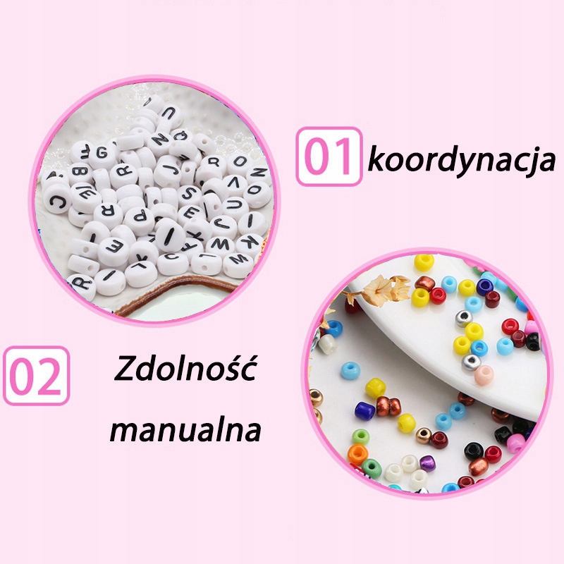 У набір входять маленькі намистини 14 кольорів, 13 відділень з літерами, намистини з сердечками, силіконова гумка на бобіні двох товщин, ножиці, ланки та застібки.