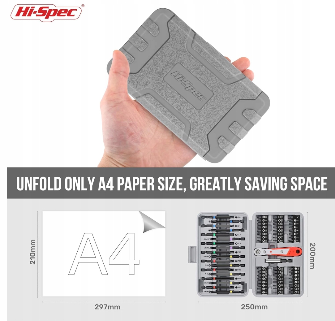 Набір Hi-Spec із 68 предметів поєднує насадки довжиною 75 мм, стандартні та безпечні насадки 25 мм. Ідеально підходить для домашнього ремонту з міні-тріскачкою та адаптером для дрилі. Компактний і зручний