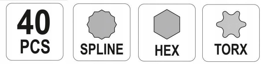 НАБІР БІТ IMBUS, TORX, SPLINE 40 ЕЛЕМЕНТІВ У ПЛАСТИКОВОМ КЕЙСУ