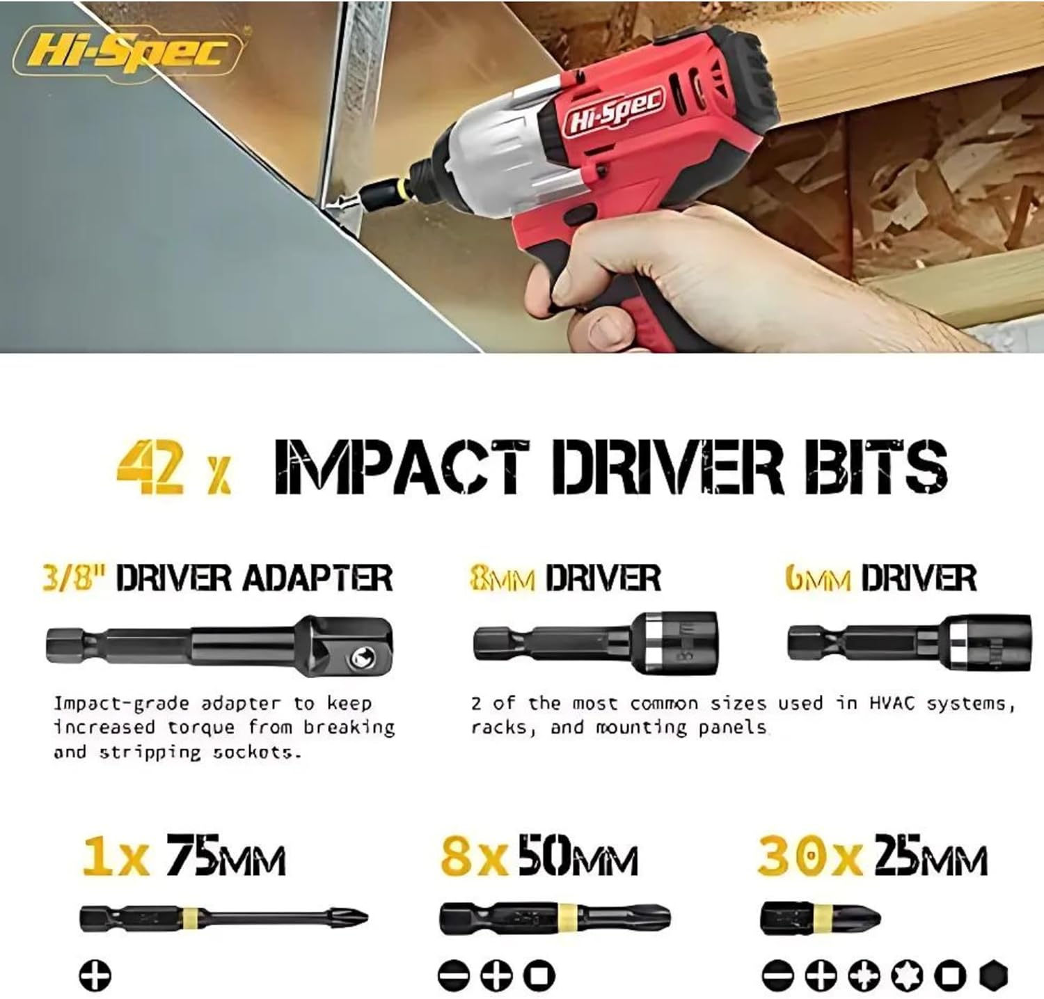 Набір ударних насадок Hi-Spec із 44 частин є ідеальним рішенням для складної роботи вдома та в майстерні. Біти, виготовлені із загартованої сталі S2, стійкі до високого крутного моменту та ударів, ніж стандартні біти.