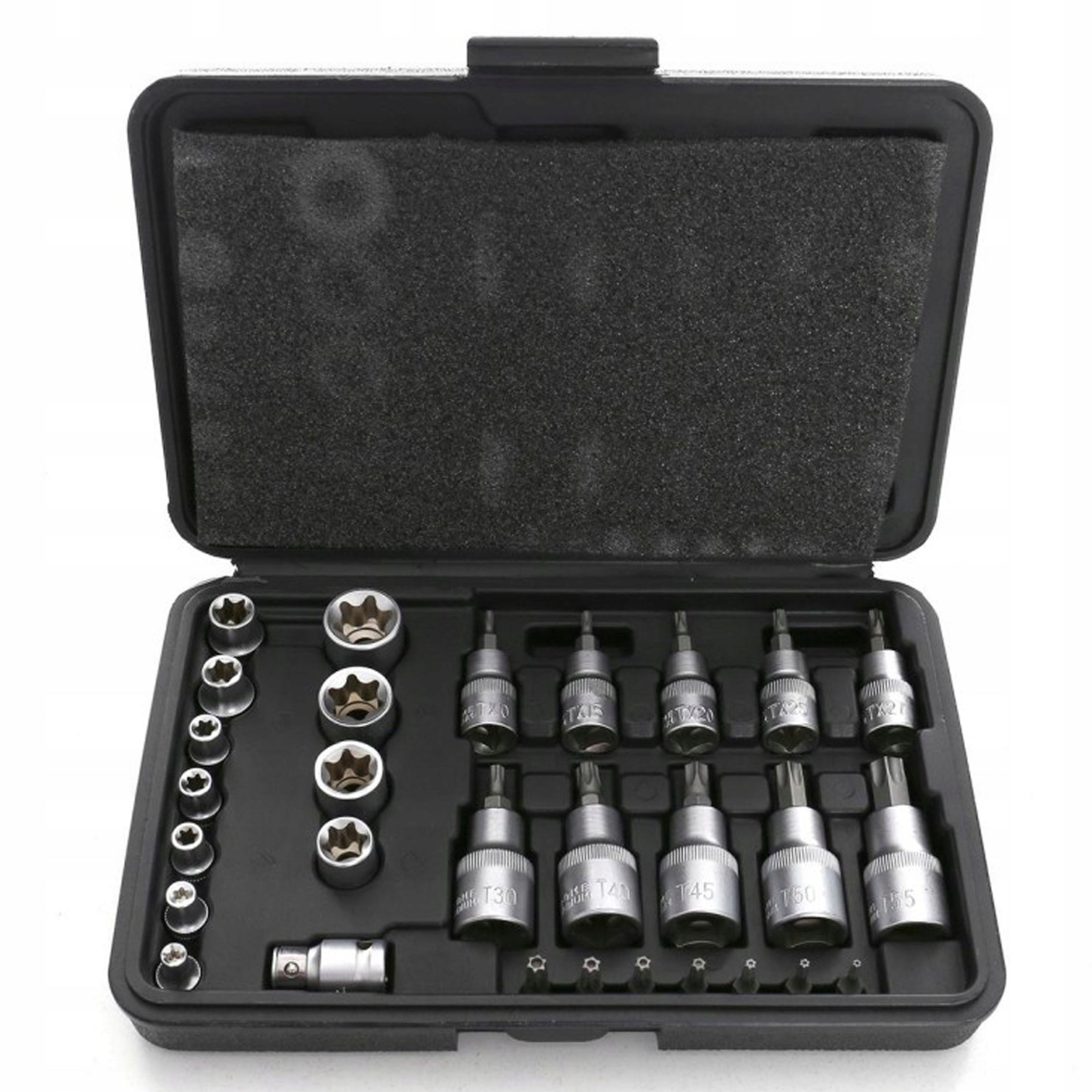 - Torx для 3/8": 6 шт. (E10, E12, E14, E16, E18, E20)