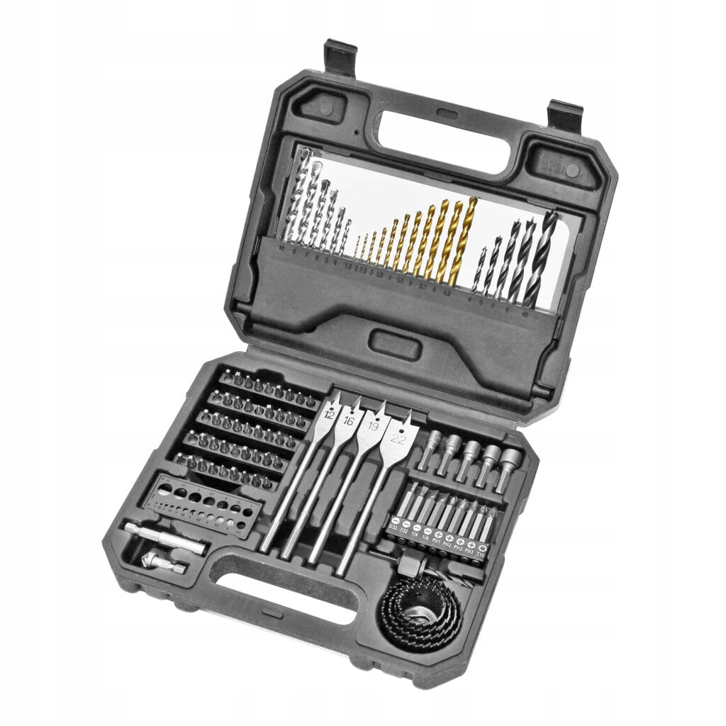Набір із 100 свердел, насадок і аксесуарів у практичній коробці для зберігання.