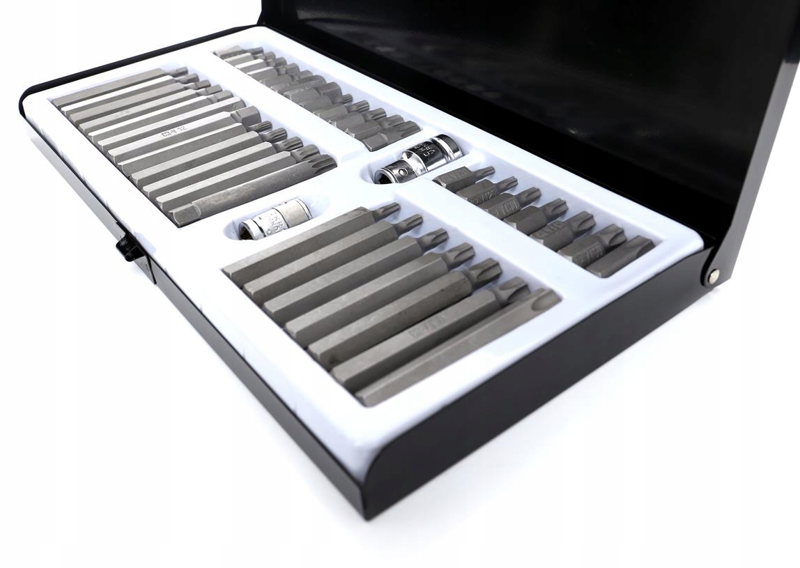 Різноманітність насадок дозволяє виконувати багато робіт у спеціалізованих механічних та автосервісах. Наконечники мають дві довжини: 30 і 75 мм, встановлені в шестигранний тримач 10 мм, адаптований для роботи з тріскачкою 1/2" і 3/8".