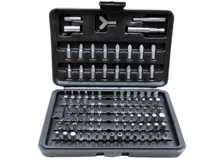 100-елементний набір шматочків, виготовлених з армованої вуглецевої сталі.
