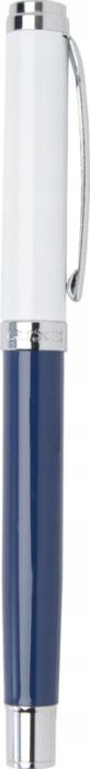 З гелевою ручкою. Ручка має срібні хромовані металеві деталі та логотип LUXE на центральному кільці. Колір чорнила: синій. Гелева ручка з переробленої латуні зі сріблясто-хромованим покриттям забезпечує комфортне письмо синіми чорнилами, які мають ємність до 400 метрів і товщину лінії 0,7 мм. Металеві деталі та логотип LUXE підкреслюють престижність виробу.