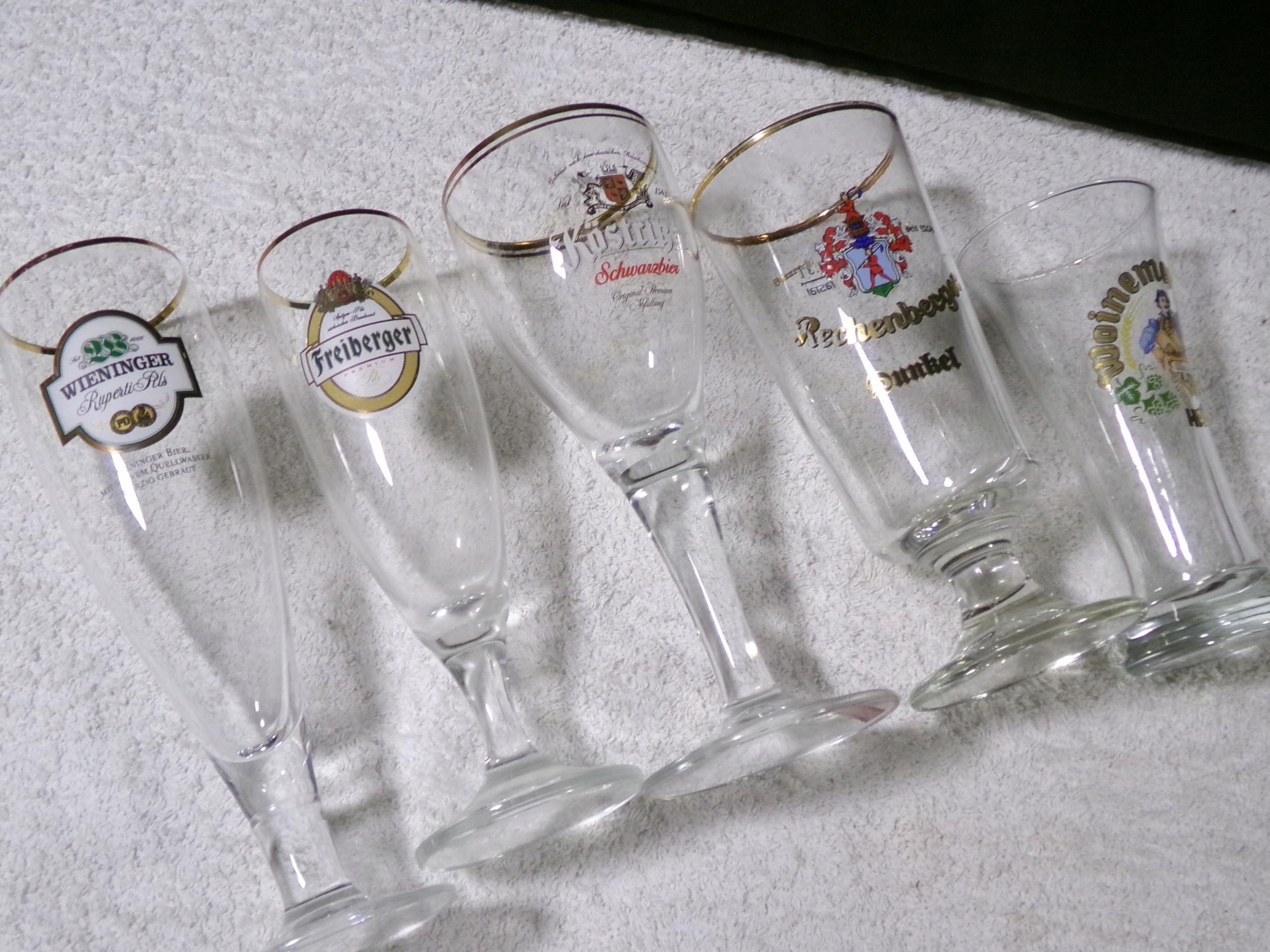 Набір пивних келихів висотою від 13 до 19,5 см, діаметром центру від 5,5 до 7 см, місткістю від 200 до 300 мл, вагою 0,79 кг. Дуже хороший стан, без пошкоджень.