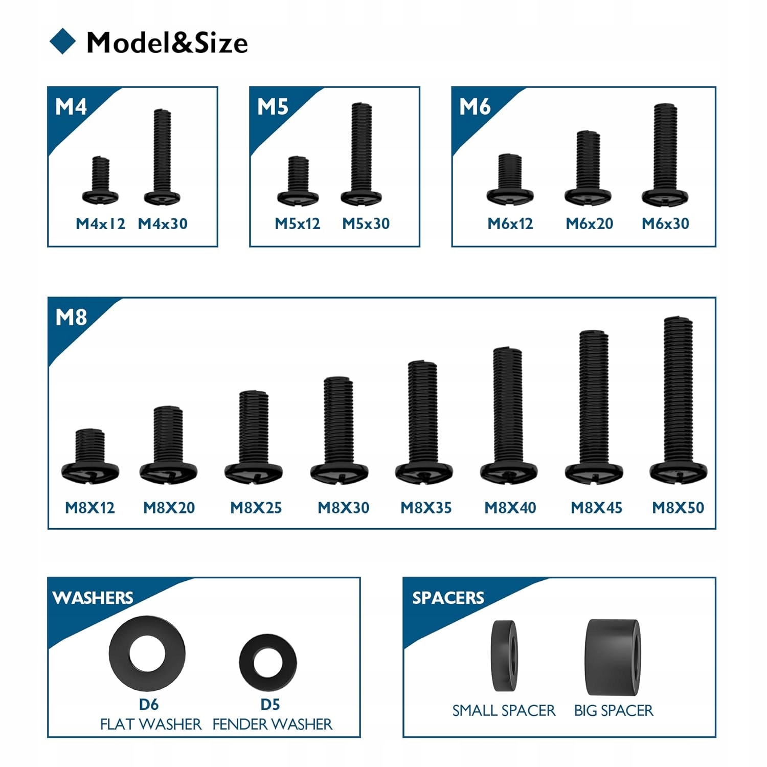 ✨ Універсальний набір гвинтів для монтажу телевізора - M4, M5, M6, M8 + прокладки та відстані ✨