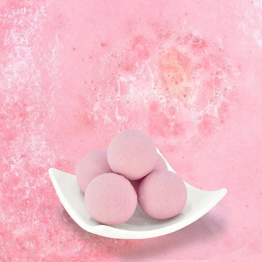 В одній упаковці аж 5 рожевих бомбочок для ванни з ароматом соковитої солодкої малини.