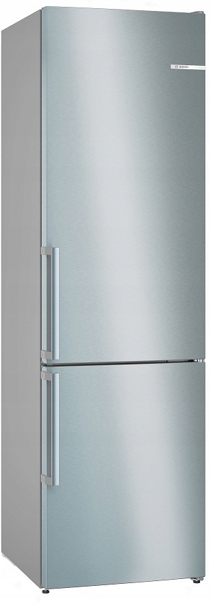 Окремо стоячий холодильник з нижньою морозильною камерою, розміри 203 x 60, матеріал: нержавіюча сталь з покриттям проти відбитків пальців.