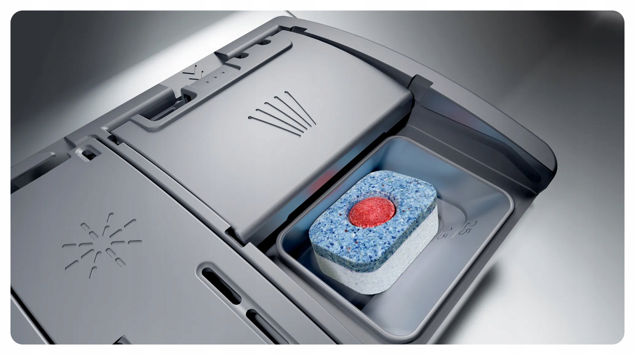 Dosing Assistant використовується для оптимізації ефекту таблеток для миття посуду. Таблетка падає прямо в спеціальний контейнер у верхньому кошику, де послідовно та контрольовано розчиняється. Правильно змішаний з водою миючий засіб діє на посуд з більшою силою, гарантуючи ідеальний результат миття при кожному завантаженні.