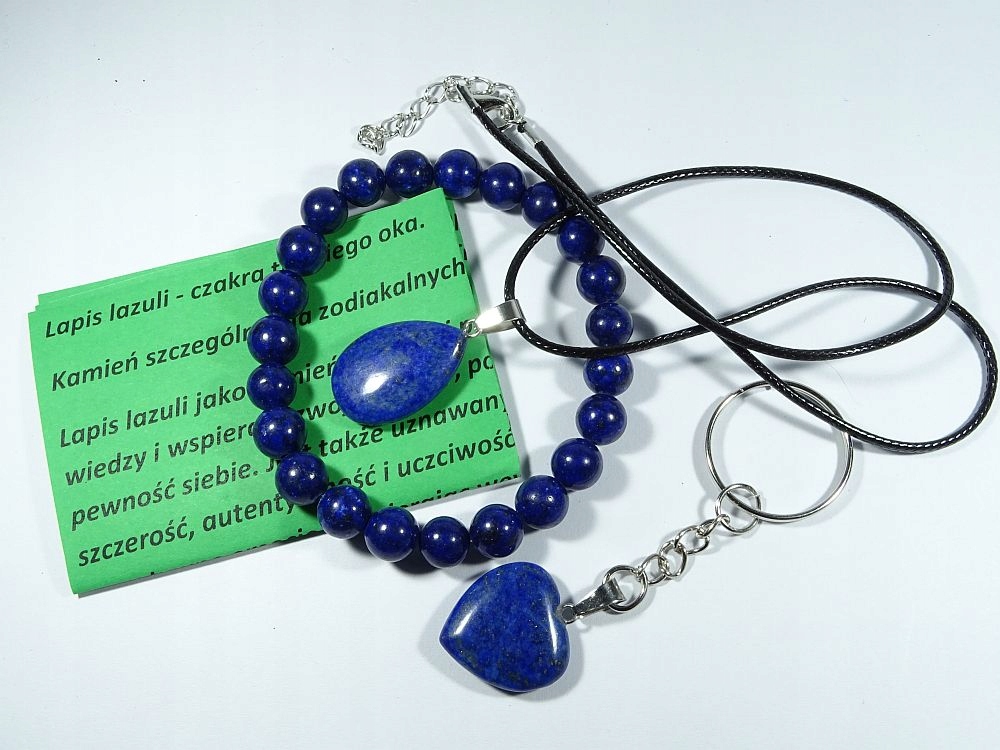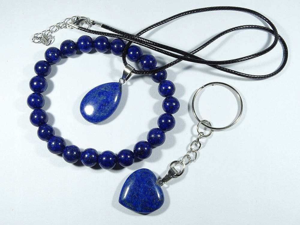 Набір з Lapis Lazuli. Операція з еластичною смугою (браслет буде відповідати кожній руці). підвіски прибл. - 25х15x5 мм. Розміри серця приблизно 20x20x5 мм. Ціна призначена для одного набору з 3 -х, вибраних випадковим чином.
