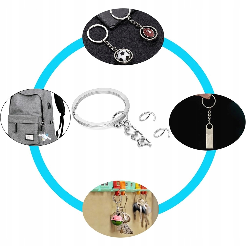 Простота у використанні: У набір входять кільця з відкривається застібкою, ланцюжок і подовжувач - швидке кріплення ключів або прикрас.
