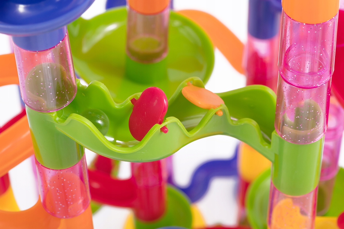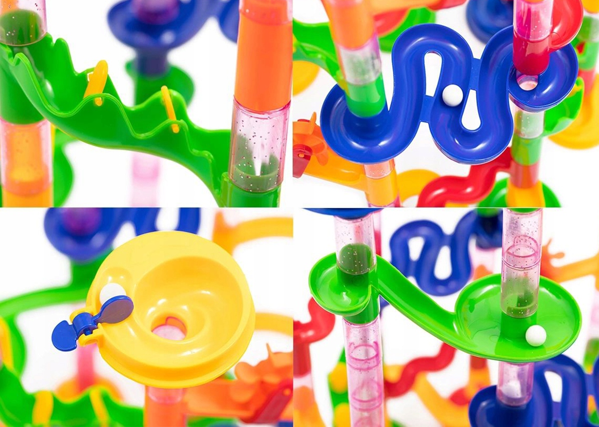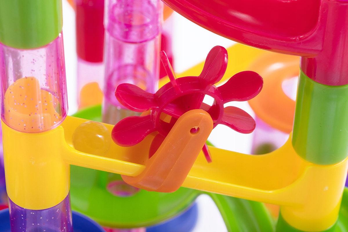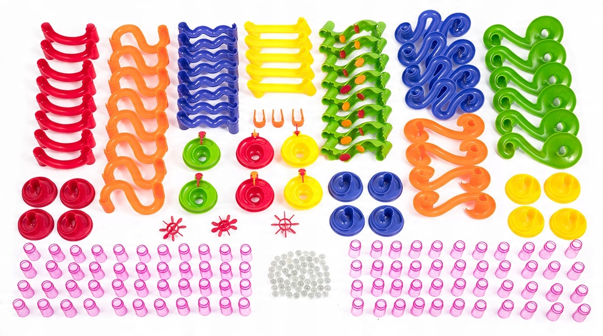 Величезний набір для побудови доріжки для м'яча, який перетворить вашу дитину на справжнього архітектора. Малюк може скопіювати оригінальні конструкції або створити свої власні найбожевільніші конструкції, а потім спостерігати, як працює його витвір. Ця кулькова доріжка являє собою набір із цілих 219 елементів різної форми, кольору та призначення.