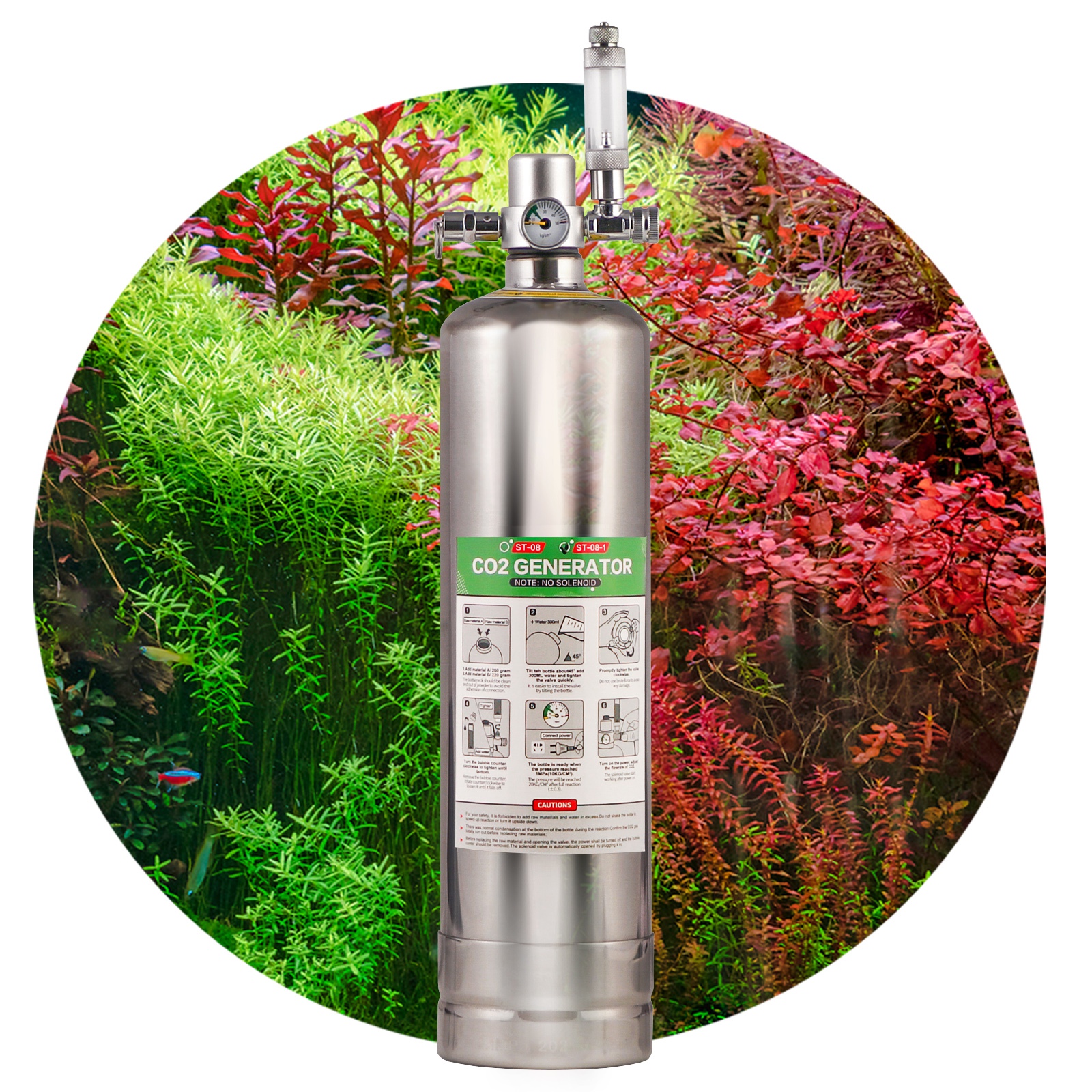 Висококласний, повністю безпечний CO2 акваріумний набір. Має всі необхідні елементи. Він простий у використанні. Підходить для резервуарів об'ємом від 20 до 200 л.