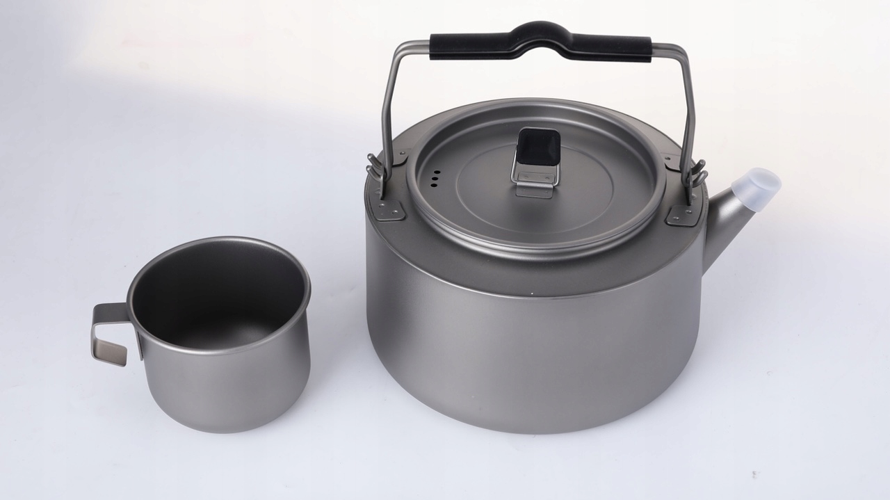 1. У набір входить чайник об’ємом 1000 мл і кухоль об’ємом 260 мл, виготовлений із чистого титану для легкої міцності.