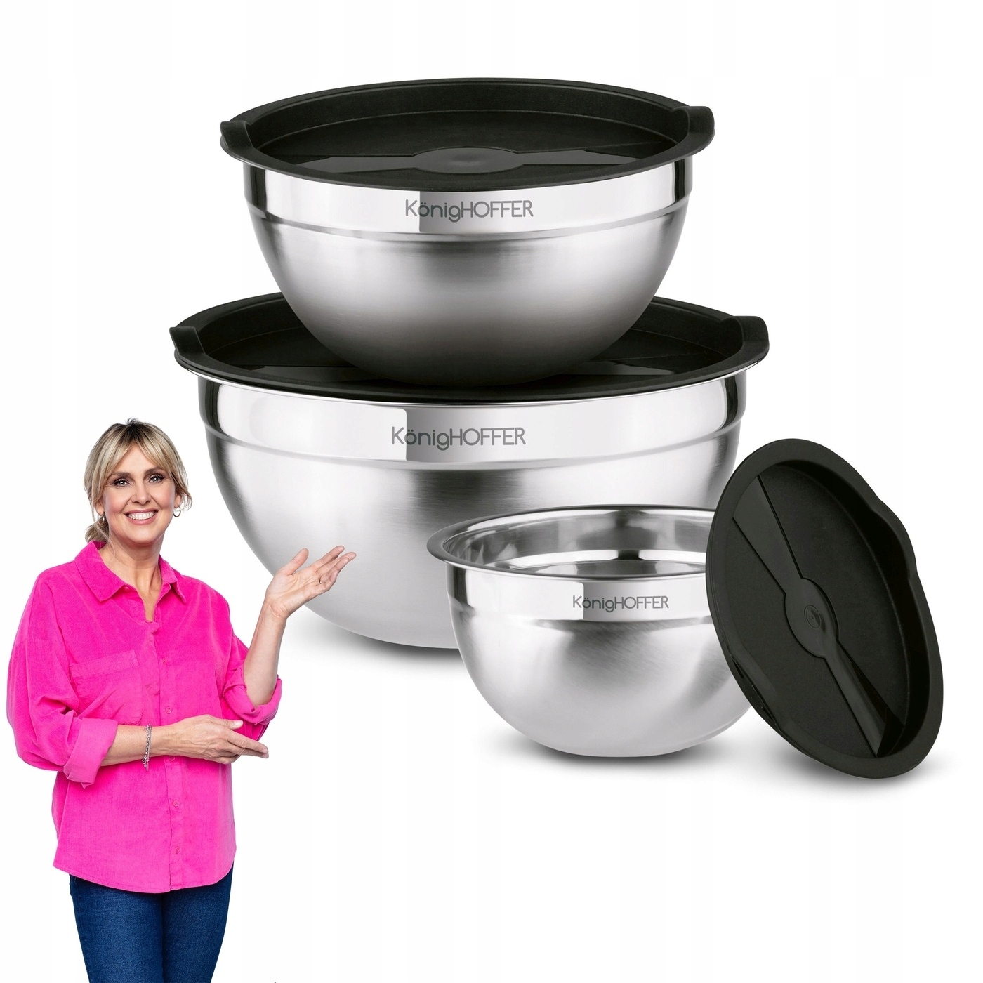 Набір ЧАШІ НЕРЖАВІЮЧІ з Кришками КОРОБКИ Konighoffer 16/20/24 см