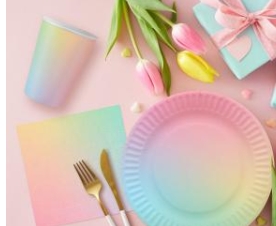 Кожен гість буде в захваті від паперового посуду РОЖЕВОГО ТА БЛАКИТНОГО ВІДТІНУ.