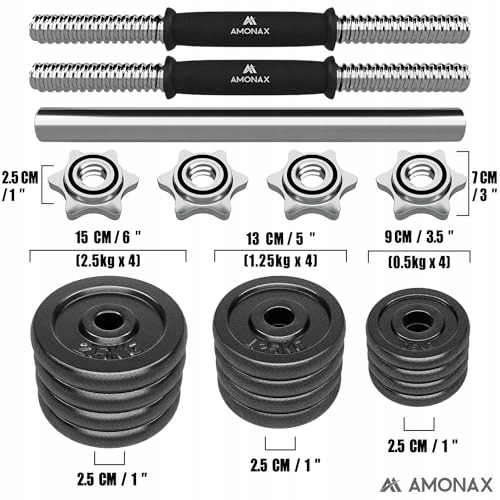 [in the box] - You Will Receive 4 x 2.5kg Cast Iron 1 Inch Weight Plates, 4x 1.25kg Dumbbell Plates, 4 x 0.5kg Dumbbell Weight Weight Plates, 2 x x x Dumbbell Bars, 1 x Chrome Dumbbell Barbell Connector, 4 Steel Шпінкові коміри та 1 посібник з тренувань. Набір ваги Amonax Dumbell може бути чудовою вільною ваги для чоловіків та вправами для жінок.