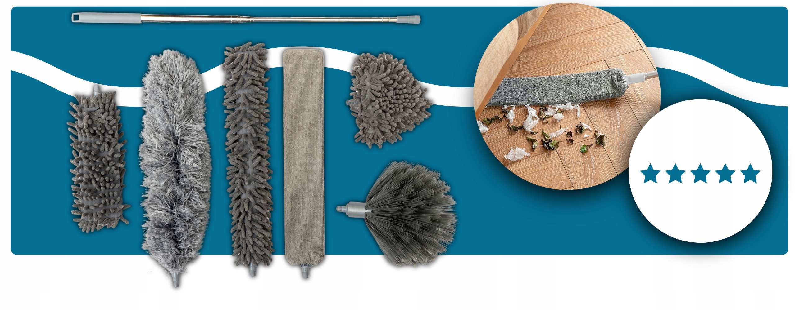 ⚫ 7 -дюймова щітка телескопа - чистота в кожному куточку та кришці! Набір з 6 змінних порад та регульованої довжини (до 280 см!) Дозвольте важко дістатися до місць і ефективно видалити пил, павутини та інший бруд. обертова головка, гнучка конструкція та легкість очищення - це додаткові переваги, які роблять чищення стають простішими та приємнішими.