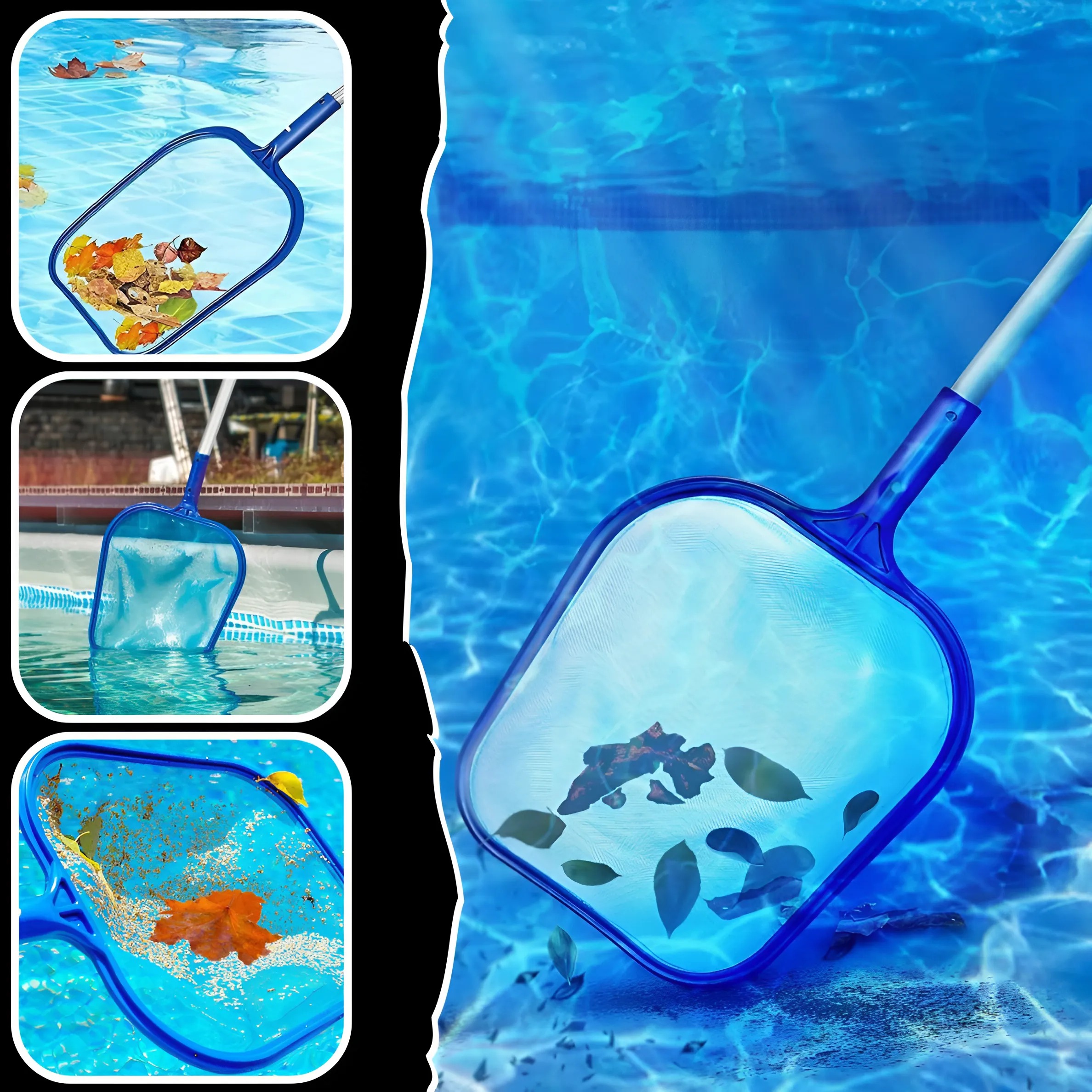 Повний набір для догляду за будь -яким садовим басейном! У ньому ви знайдете все необхідне для швидкого та ефективного видалення листя, комах та піску з поверхні та дна басейну. Сітка з палицею дозволяє вибирати домішки з поверхні, а пилосос води впорається з брудом, вбудованим на дно.