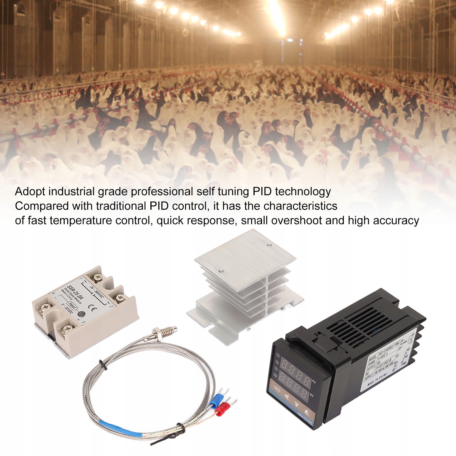 ПІД-регулятор температури можна широко використовувати у фермах, пташниках, електриці, хімічне, лиття під тиском, харчове, інкубаторне, піч та інше обладнання.