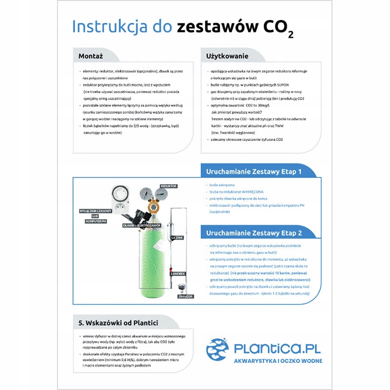- для наших наборів ми вибрали найпопулярнішу серію редукторів. на ринку з двома манометрами від компанії MAGNUM. Надійність і гарантія безпеки протягом багатьох років є найважливішими характеристиками, які скидають з трону інші редуктори, представлені на ринку. Обладнання порівняно невелике, що важливо у випадку з маленькими акваріумними шафами. Манометри, які видно на фото, показують тиск на виході та тиск газу в балоні - завдяки їм ми знаємо на кілька днів наперед, коли газ закінчиться. Вихідна різьба: G 1/8".