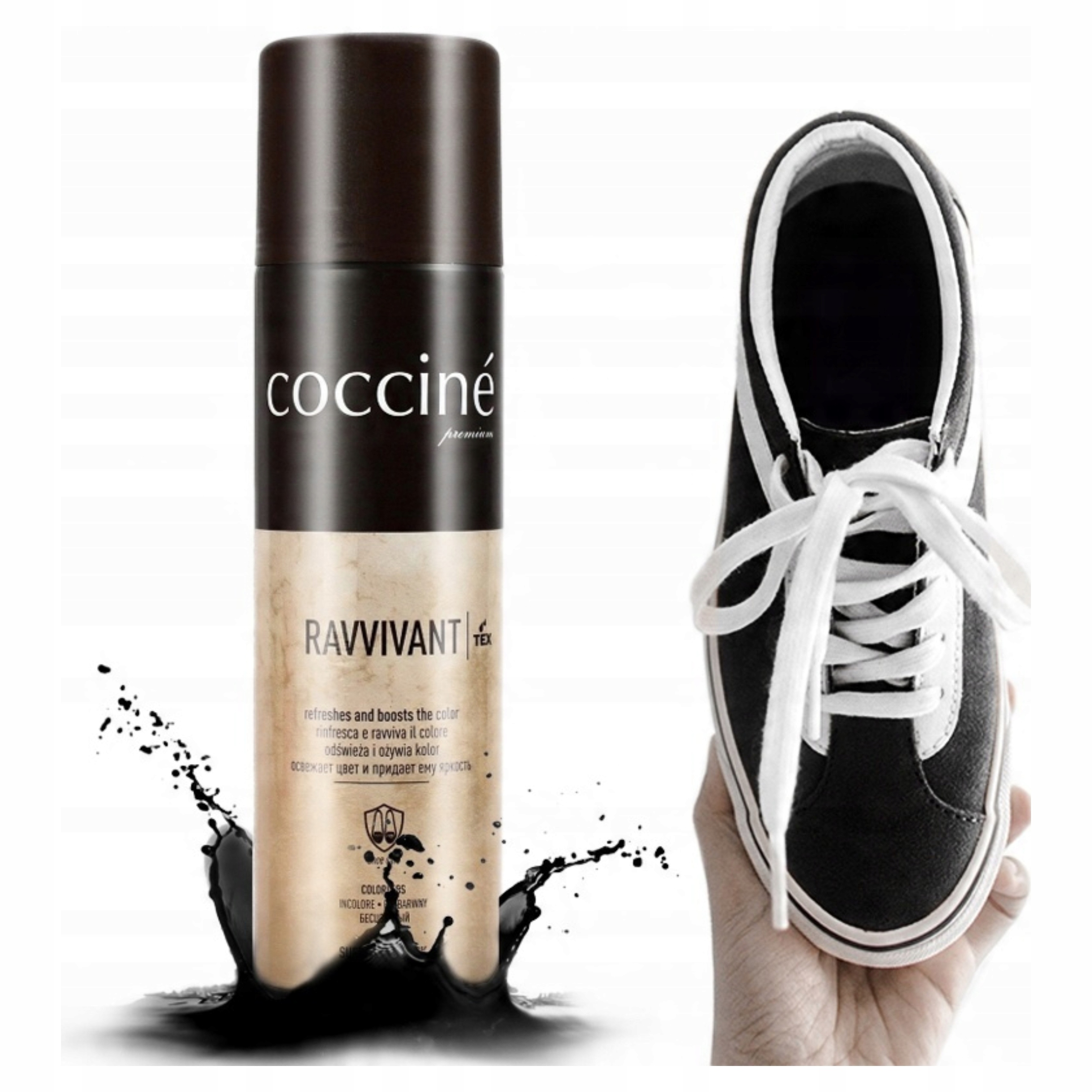 Спрей Coccine Ravvivant — надійний спосіб відновити колір і зовнішній вигляд взуття та аксесуарів із нубуку та замші. Високоякісна фарба-спрей, ефективно поєднує в собі функції фарбування, догляду та захисту. Виберіть перевірений продукт від авторитетного бренду та поверніть своєму взуттю колишню красу!