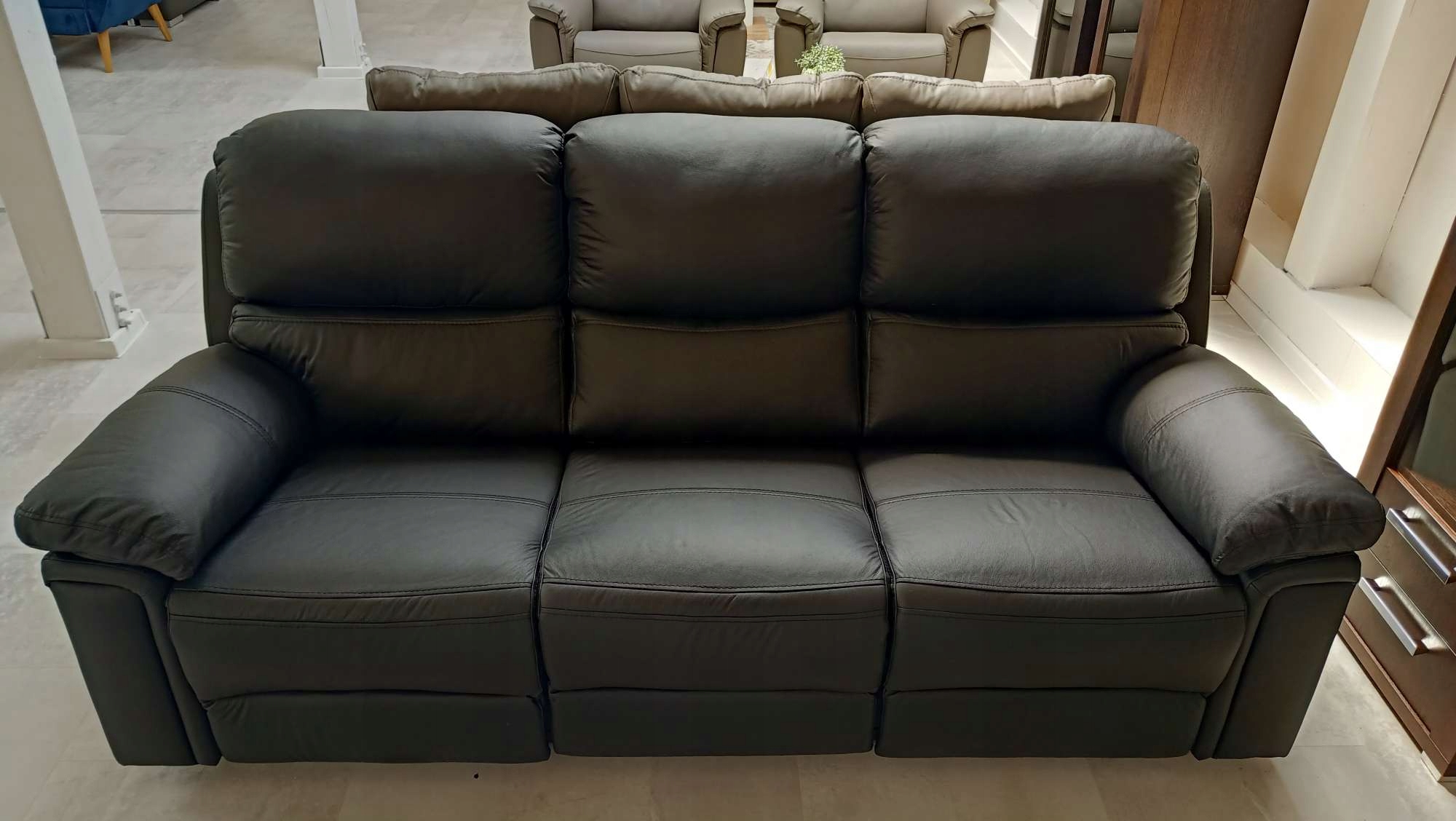 Меблі оббиті натуральною шкірою також із зворотного боку, тому їх можна розмістити в будь-якому місці кімнати.