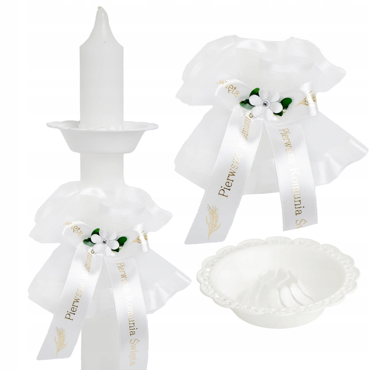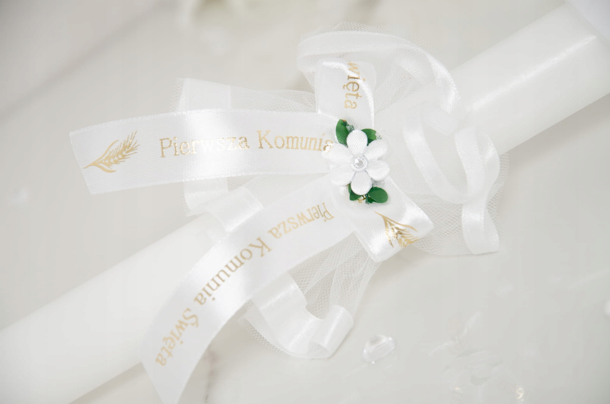 Біла, ніжна прикраса для свічок. Гарний декоративний елемент, який додасть шарму будь-якій свічці. Ідеальна прикраса для причасної свічки. Тростина продається в комплекті зі свічкою-крапельницею.