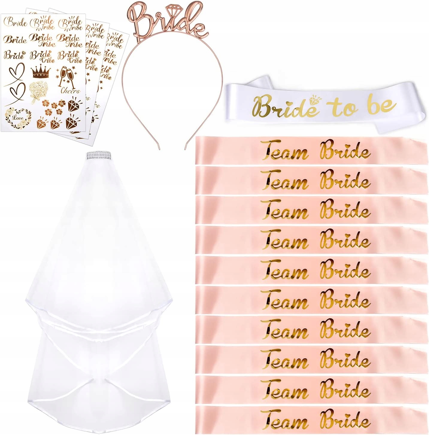 Ідеально підходить для вечора чи дня: достатньо елегантний, щоб носити його вдень або для пустотливої вечірки. Цей набір для весільної вечірки — чудовий спосіб розпочати прийом! Ідеально підходить для дівич-вечорів, весіль, ювілеїв, заручин і навіть ідей для косплею для дорослих, без обмежень у тому, для чого ви можете використовувати цей випадок!