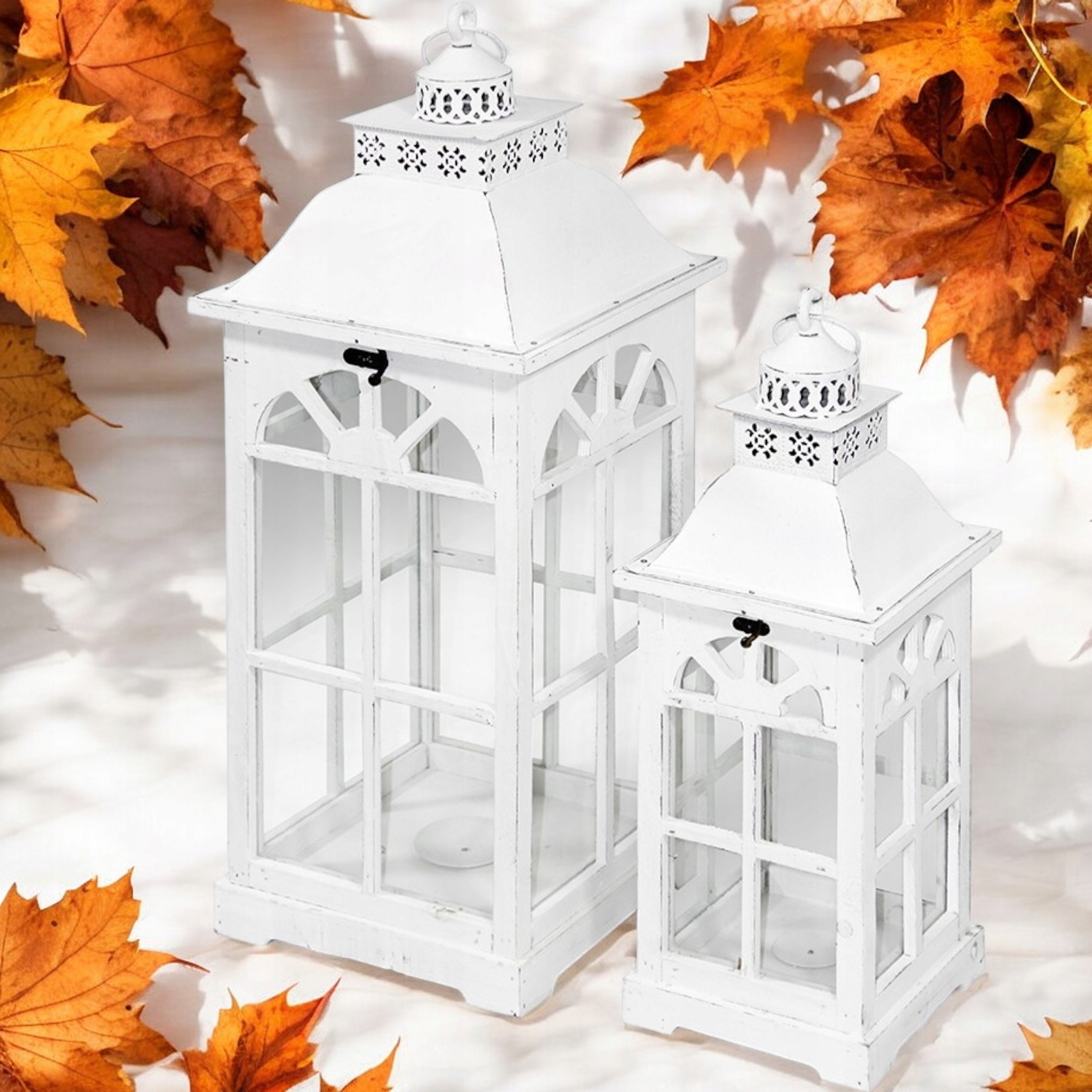 Набір декоративних ліхтарів, 2 шт. Білі дерев'яні ліхтарики, великий підсвічник