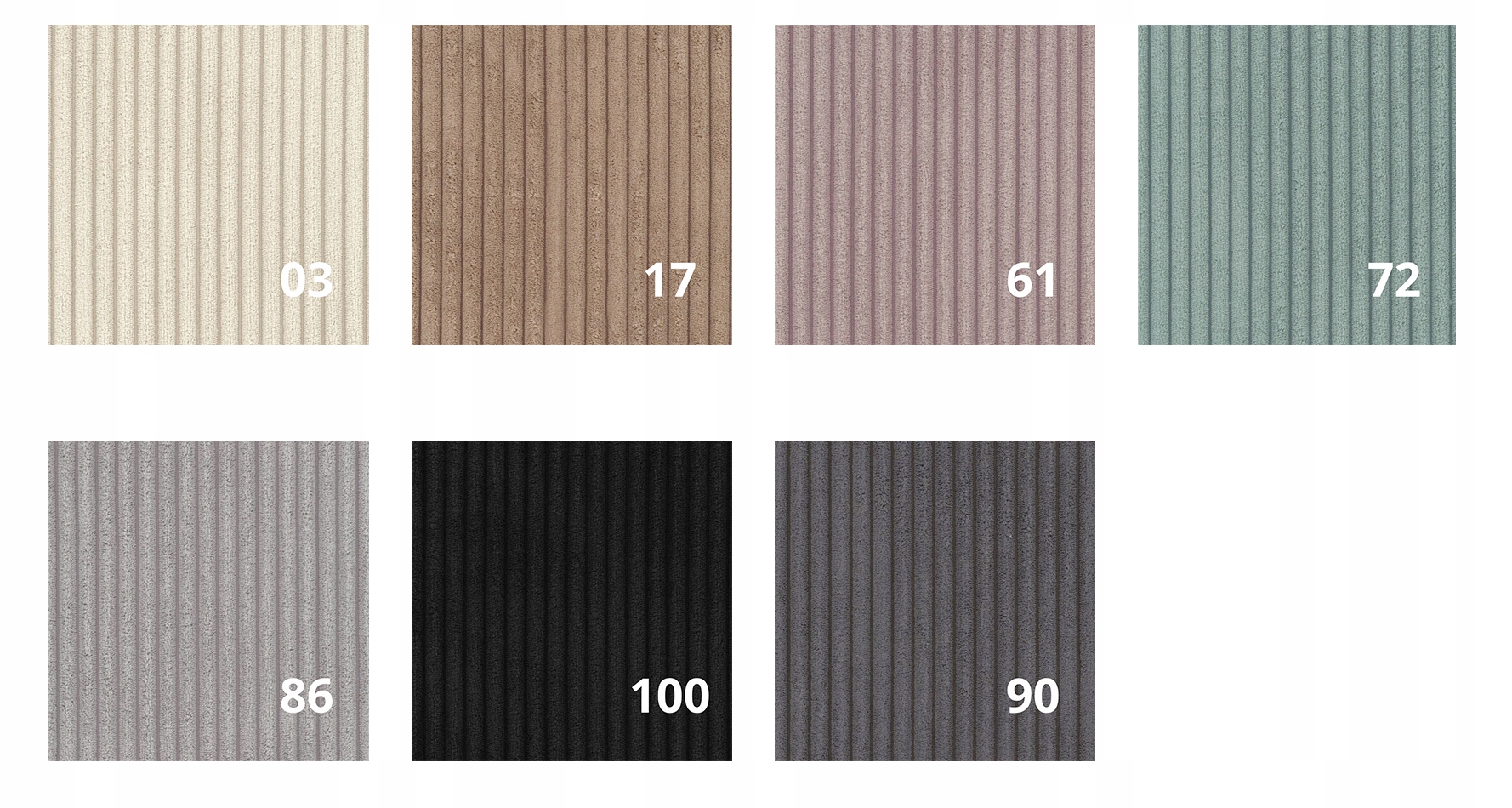 Лінкольн - надзвичайно універсальна тканина, яка ідеально підкреслює характер меблів, надаючи їй надзвичайний вигляд. Тканина оббивки, що нагадує широкий корпур з шириною близько 10 мм з довгим волоссям, приємним і ніжним до м'якого дотику. Суцільна основа та дуже висока стійкість до стирання зроблять меблі, виготовлені в цій тканині, щоб служити вам протягом багатьох років. Очищення можливе лише за допомогою м'якої оббивки. Не будьте бідними (хлор). Не прасуйте. Не суху механічно. Не хімічно чисті.