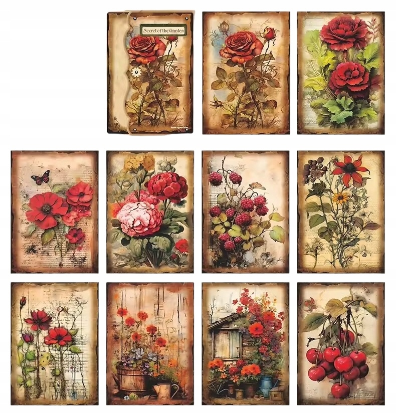 НАБІР ДЕКОРАТИВНОГО ПАПЕРУ ДЛЯ СКРАПБУКІНГУ 30 КОВЧЕГ КВІТИ ТРОЯНДИ МАКИ