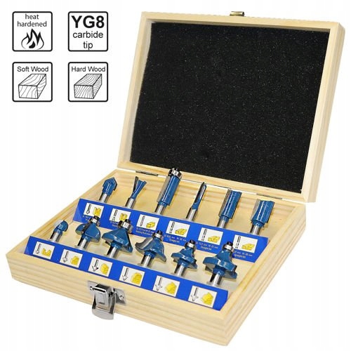 Набір деревних різаків 8 мм S&R 12 PCS для ручних та столових фрезерних машин