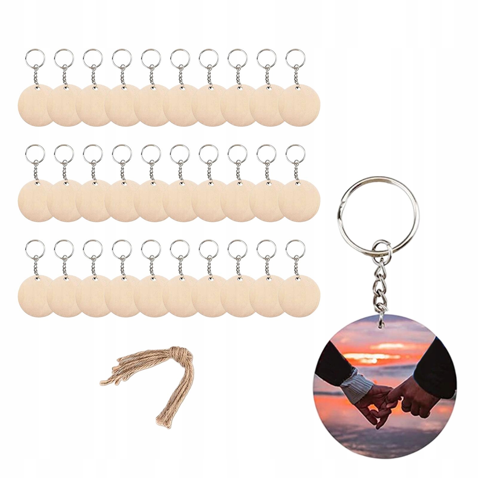 Пакет містить: 30 пустих дерев’яних заготовок, 30 брелоків, 30 відкритих кілець, 5 метрів мотузки, достатню кількість, щоб задовольнити різноманітні потреби в DIY.