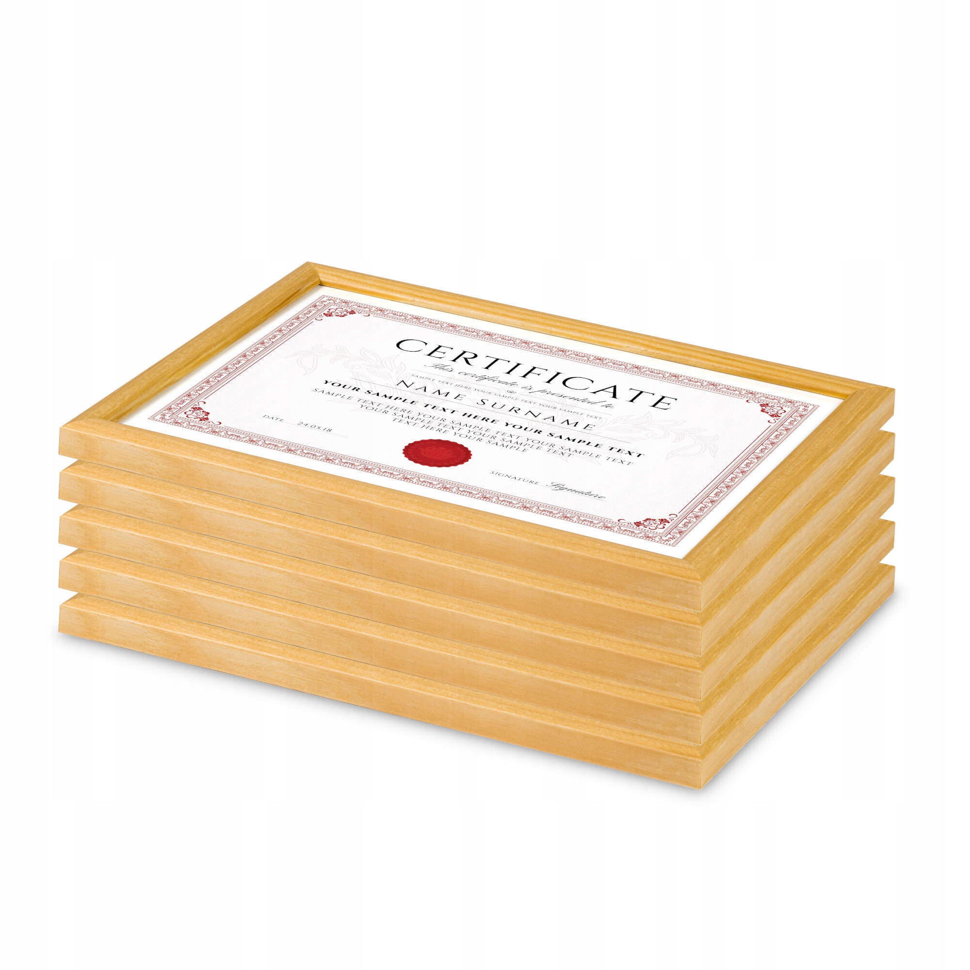 Фоторамки кольору натурального дерева з профілем 12х13 мм, 100% дерево. Упаковка в дерев'яну рамку - відмінне рішення для економного обрамлення фотографій, малюнків і гравюр. Рами упаковані в набори по 5 штук. Укомплектовані мінеральним склом. Спинки виготовлені з твердої плити HDF. Фоторамки розміром до 18х24 см додатково мають ніжку/ніжку, що дозволяє розмістити фотографію в рамці на столі чи полиці. Пакет дерев'яної рами DIPLO доступний у розмірах від 10х15 см до 30х40 см.