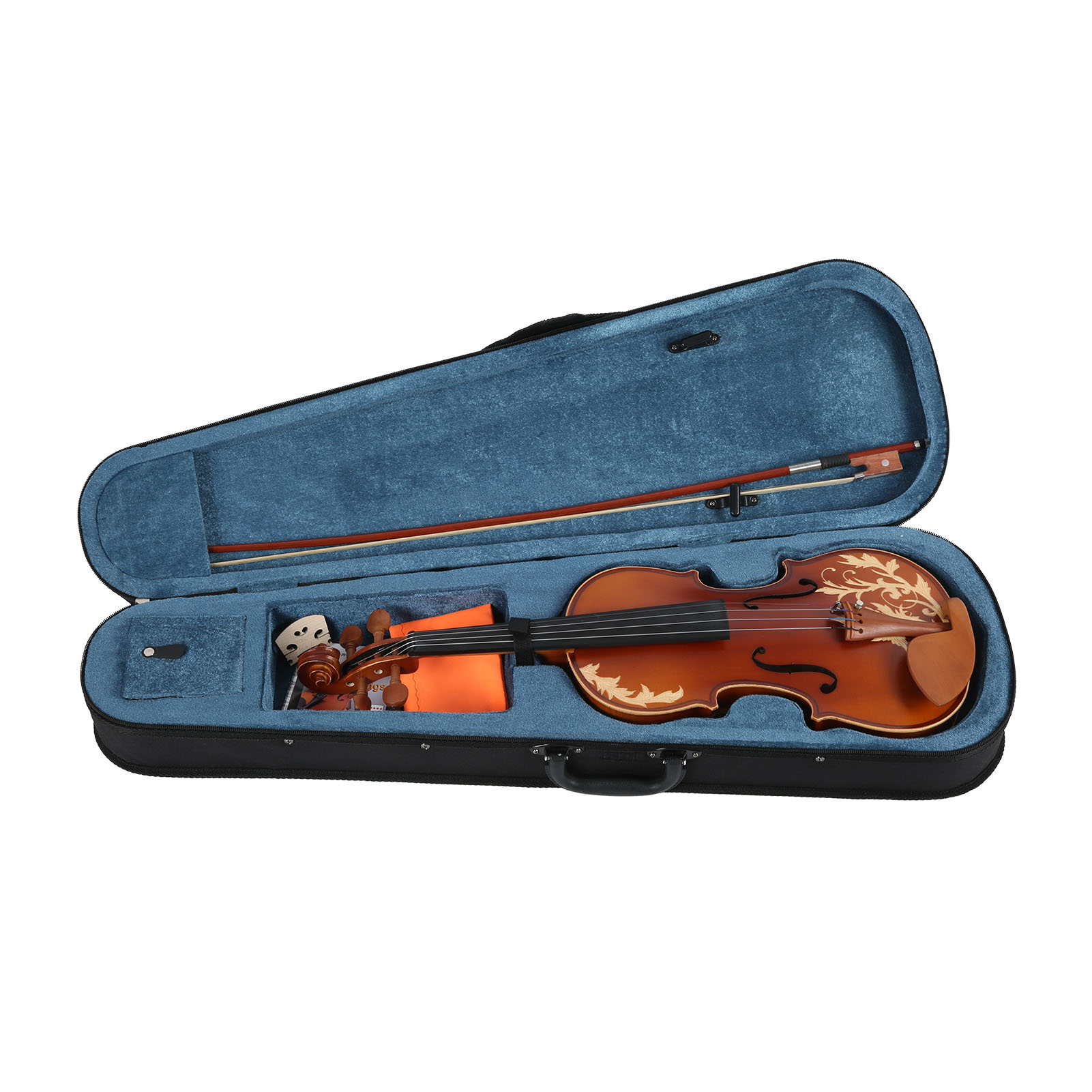 Дерев'яний набір для скрипки з різьбленням квітів зі смичком/струнами/каніфоллю/дротом/містком/футляром 4/4 AV-608