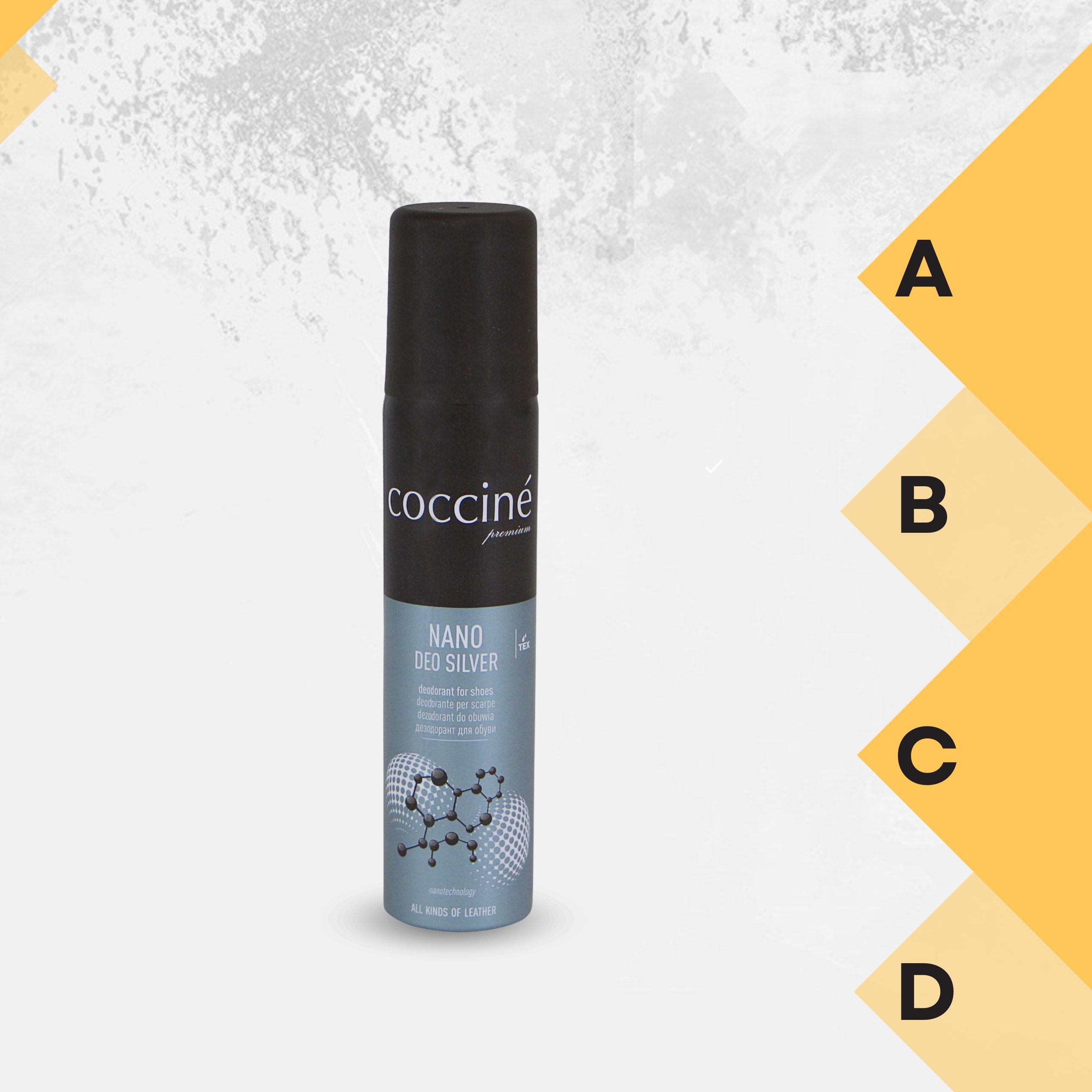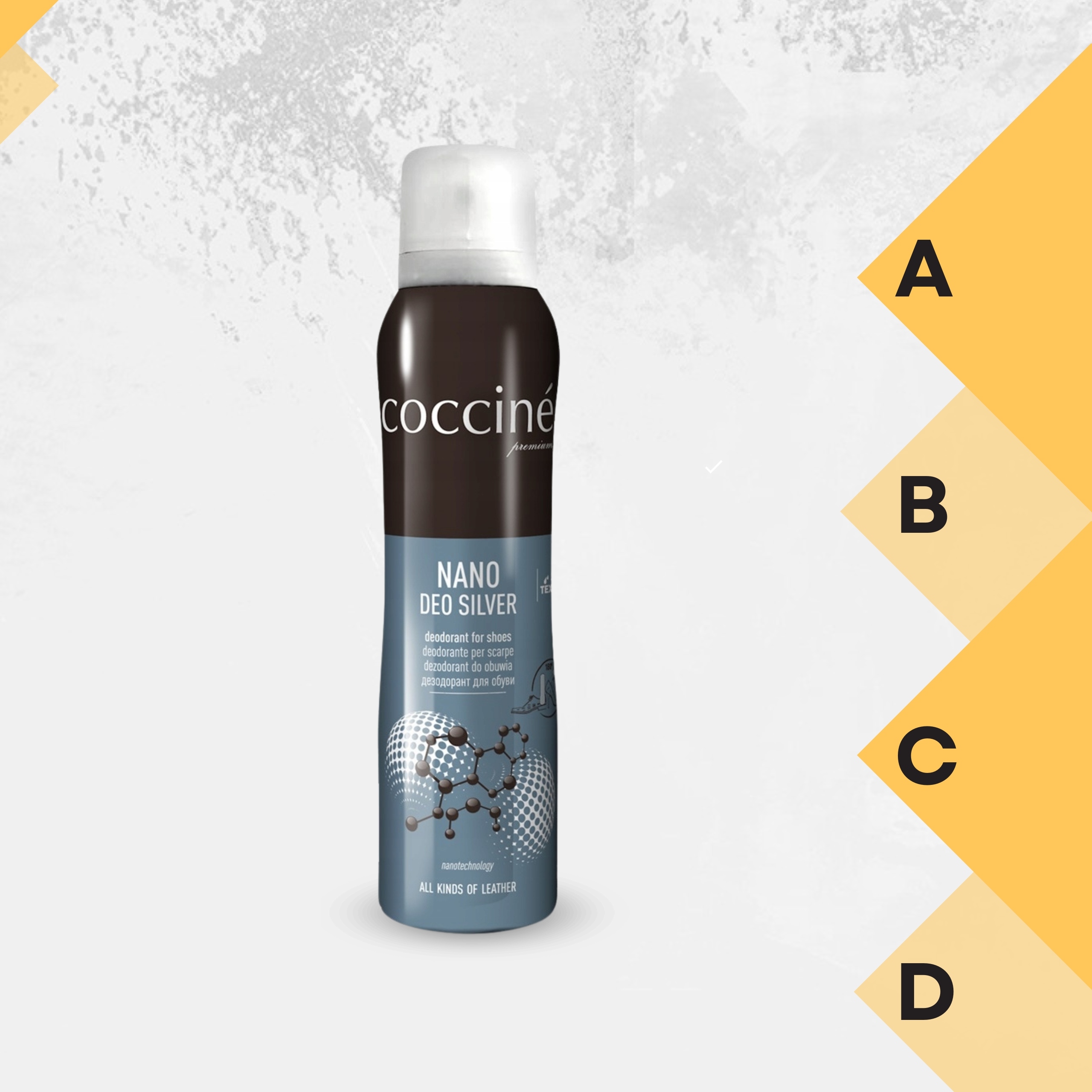 Coccine Nano Deo Silver 400 мл – це сучасний дезодорант для взуття, який завдяки нанотехнологіям не лише зберігає свіжість взуття, але й гігієну ніг. Срібло проникає в структуру матеріалу, бореться з бактеріями та нейтралізує запахи, а кремнезем поглинає зайву вологу.