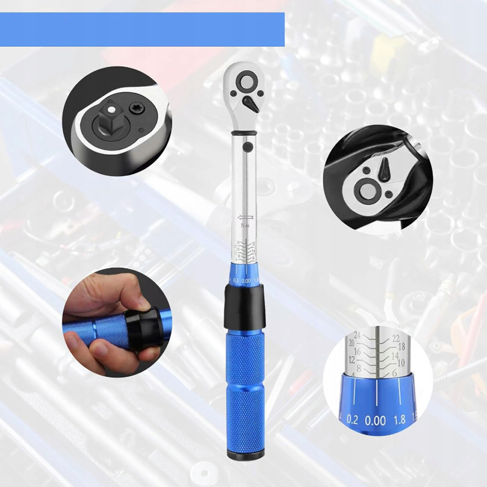✅Гайковий ключ має діапазон крутного моменту від 2 до 24 Нм. Він має лазерне маркування для легкого регулювання. Оснащений кнопкою швидкого розблокування. Потягніть вниз, щоб відрегулювати значення крутного моменту, відпустіть, щоб зафіксувати значення крутного моменту, і коли встановлене значення крутного моменту буде досягнуто, ви почуєте клацання, яке нагадає вам припинити застосування сили, щоб уникнути пошкоджень, спричинених надмірним затягуванням.